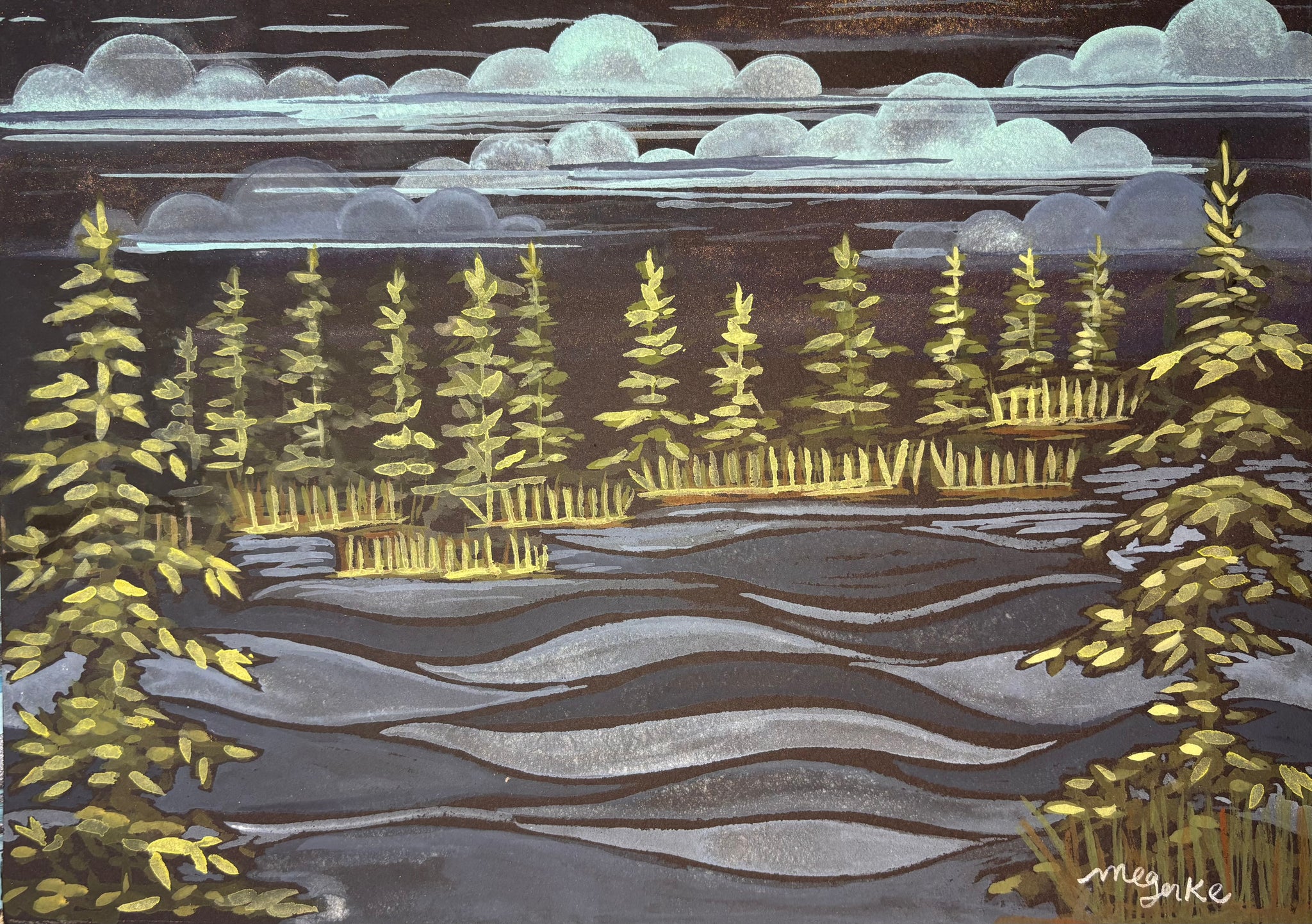 Full Moon Swim -Textured Watercolor Matte Posters