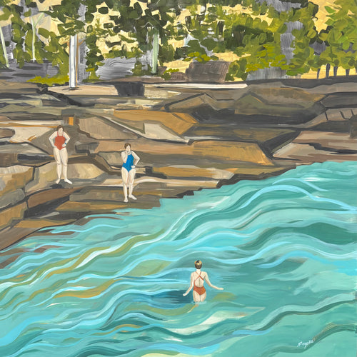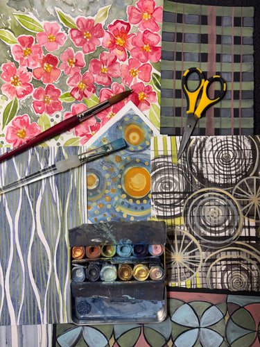 Resin coated watercolor and gouache collage on cradled wood panels.